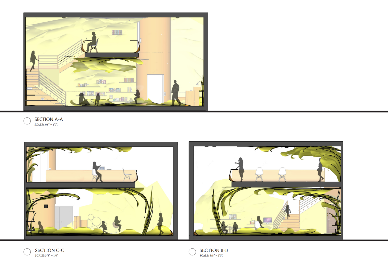 Interiors Studio II addresses spatial and phenomenological experiences through material exploration. The final project is a live/work library that considers thresholds of public and private, developed through iterative development of material and tectonic logics.