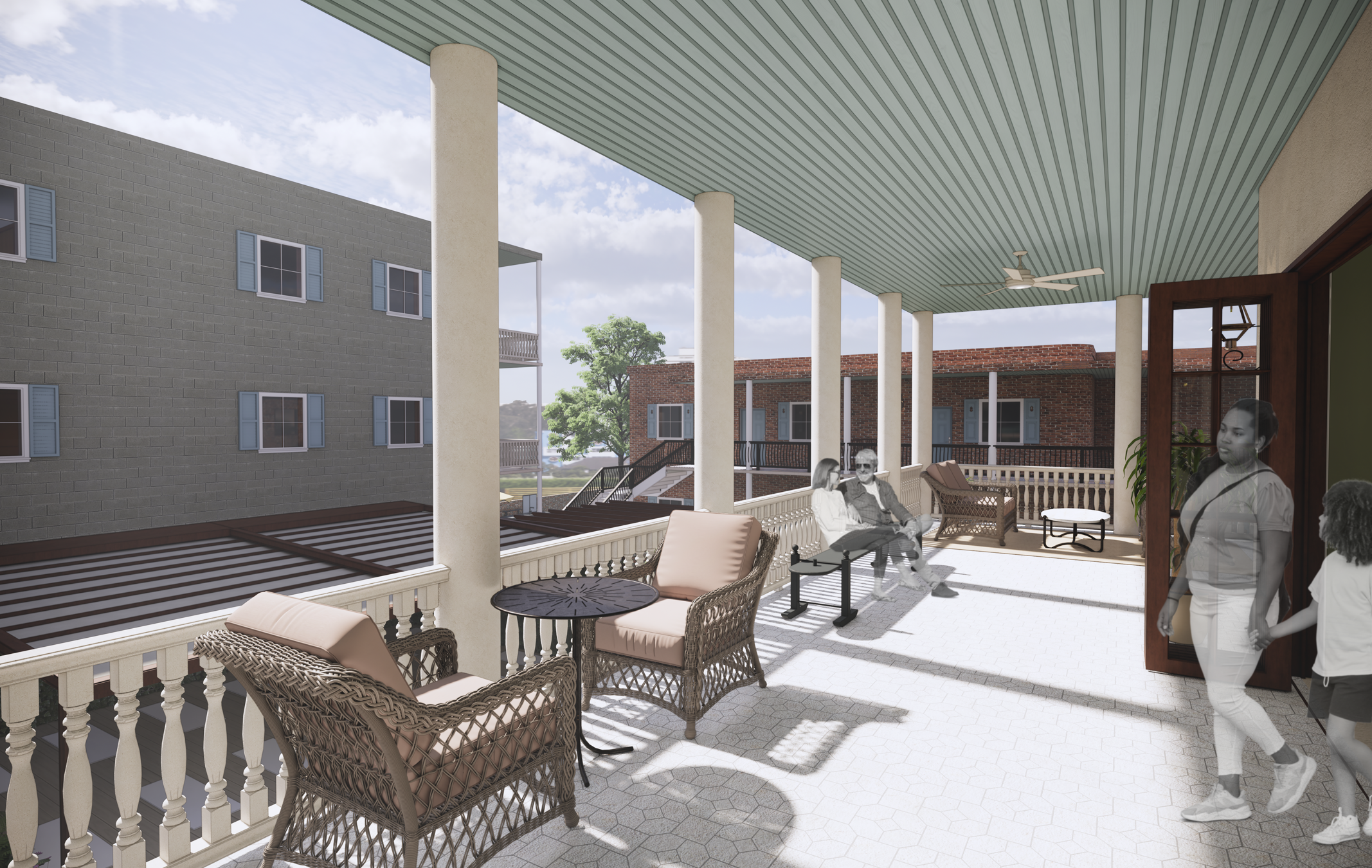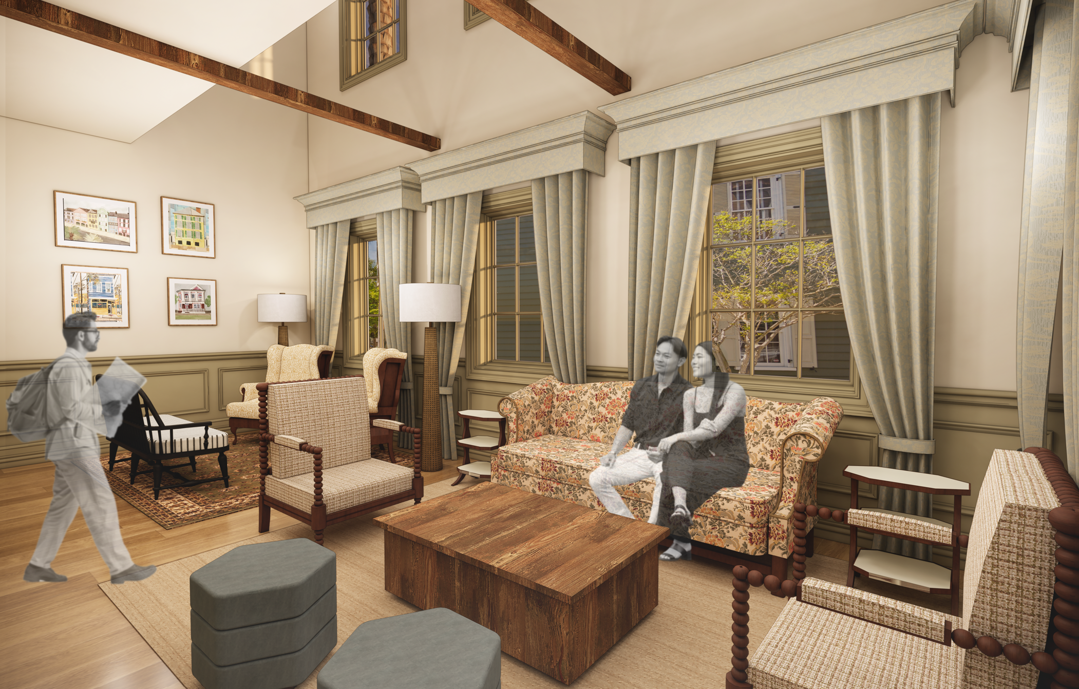 Tourism in cities has increased worldwide, leading to cultural commodification and the displacement of local residents due to increased living costs and a saturation of short-term rentals. How can cities cultivate spaces that serve their residents while also allowing travelers to visit more mindfully? Drawing inspiration from Albergo Diffuso, an Italian concept which disperses hotel accommodations and programming throughout a small village, this project aims to create a new model for hospitality and urban planning. Using Charleston, South Carolina, as a prototype, tourists are integrated into the city's fabric through homestays with locals, keeping long term residents, now also homeowners, within city limits. This hospitality model integrates local businesses and accommodations within a one-block radius, so locals can stay local, and tourists can experience a curated authentic visit. Through this approach, my thesis presents a scalable framework for cities facing similar challenges, ultimately reimagining tourism to actively support locals rather than displacing them.