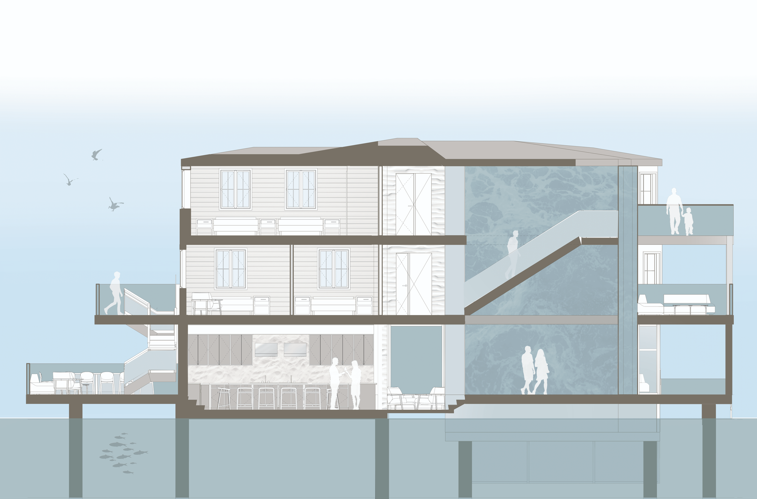 Beaches and shorelines are some of humanity’s most treasured places. However, sea level rise as a consequence of climate change threatens to erase these communities from the map entirely. And, even in the face of destruction, the choice to leave one’s generational home is a difficult one. I argue that instead of simply running from rising waters, the more proactive solution is to design intentionally in-place, preserving the history of our treasured beach towns. As we grapple with the reality of encroaching tides, this thesis explores the human relationship with coastal inhabitation in the context of the Jersey Shore and reimagines living near water as living with water.