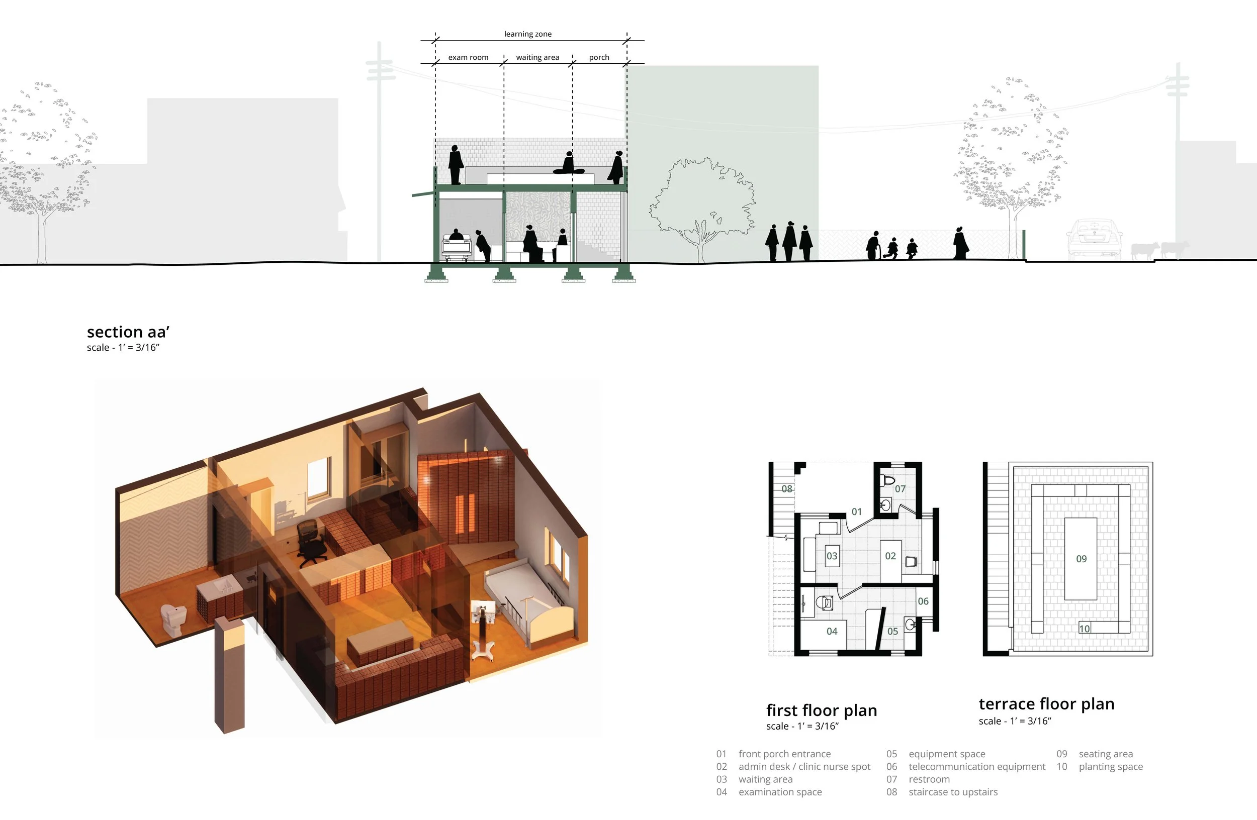 For this project, my aim is to use these building modules to redesign according to the current needs of the masses. How we live is often defined by these four aspects, which are also the areas of design (nodes) in this project: healthcare, housing, education, and commerce. Throughout this journey, experiences have become narratives, learnings have become intents, structures have become spaces, all with one intention—[re]rural.